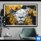 Poster | Weiße Löwin mit Goldblüten | Panorama