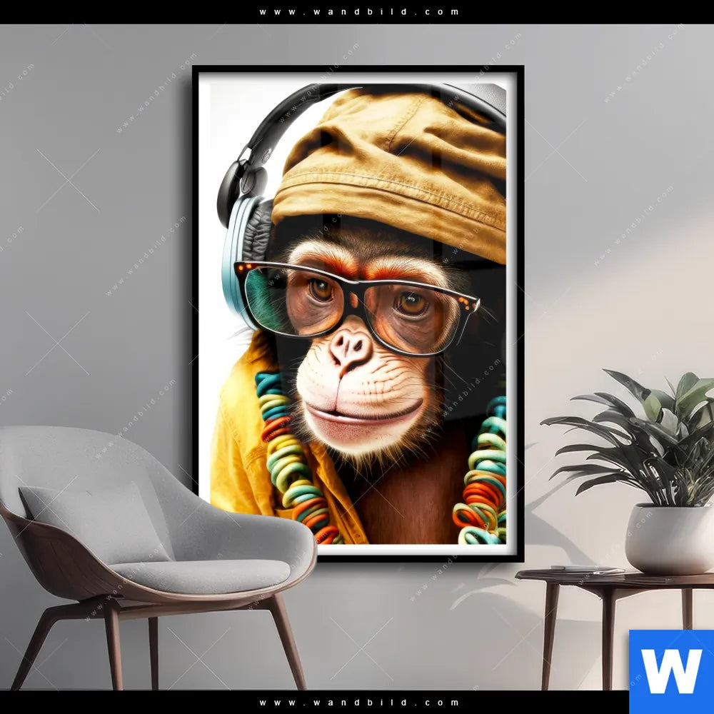Poster | Affe mit Kopfhörern & Brille | Hochformat