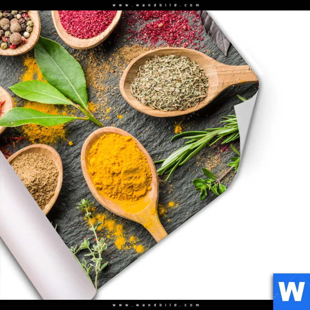 Poster | Bunte Gewürze in Holzlöffeln | Quadrat