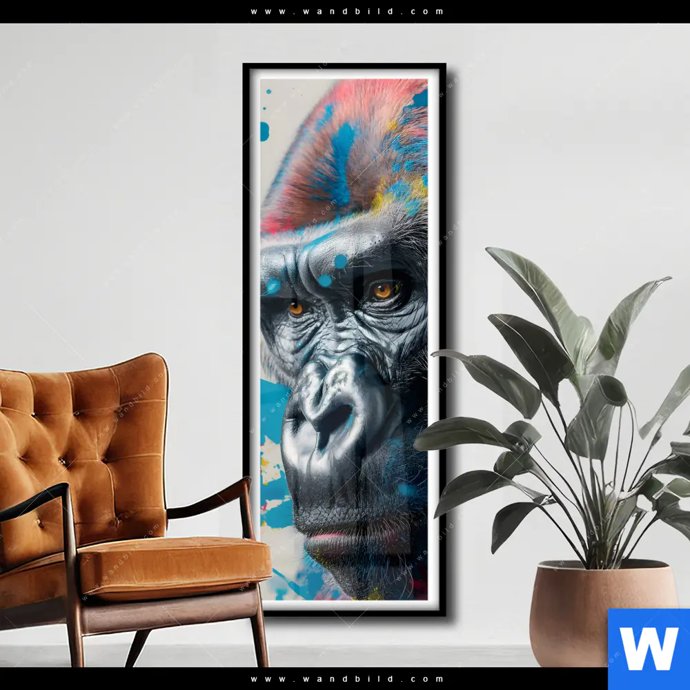 Poster | Bunter Gorilla mit Farbspritzern | Schmal