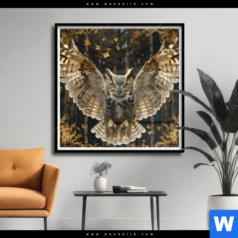 Poster | Eule inmitten goldener Blätter | Quadrat
