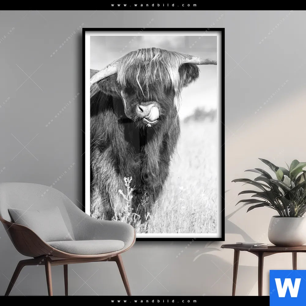 Poster | Hochlandkuh auf einer Wiese | Hochformat