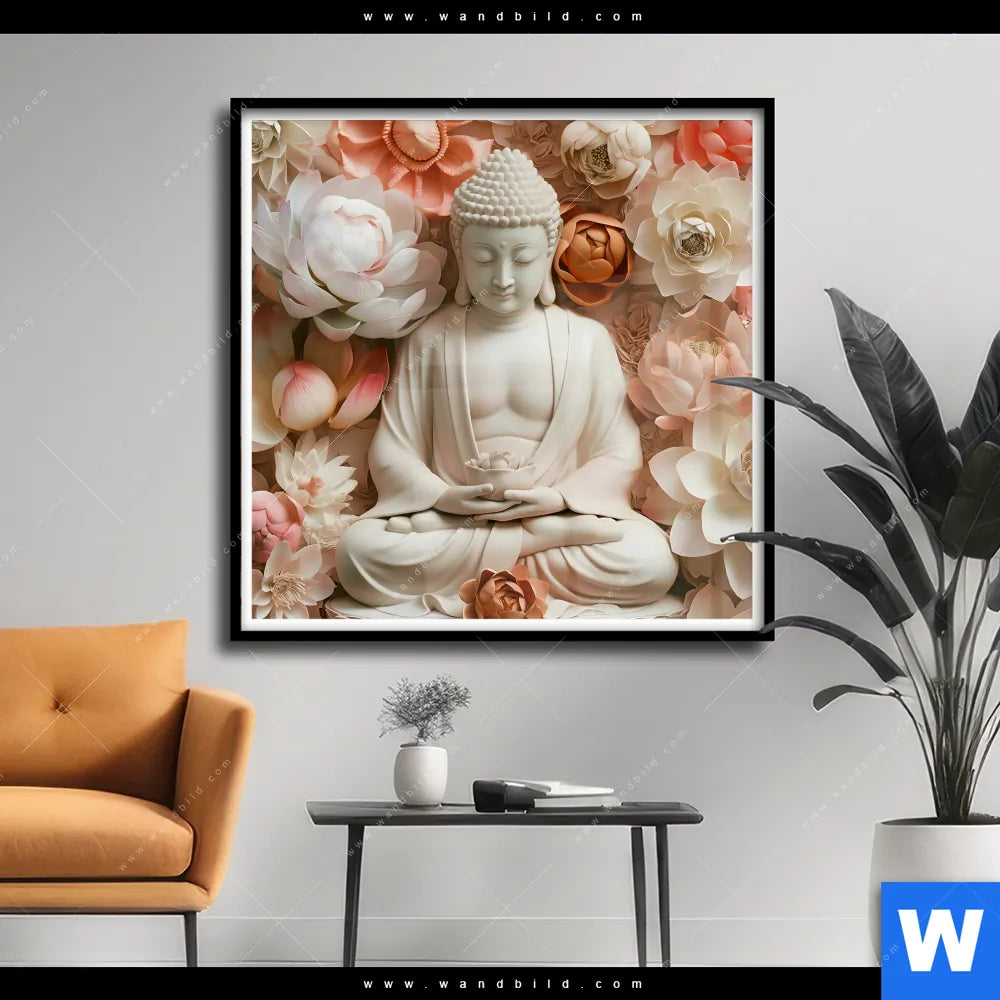 Poster | Meditierender Buddha mit Blüten | Quadrat
