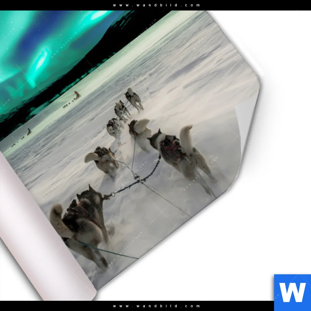 Poster | Nordlichter und Schlittenhunde | Quadrat
