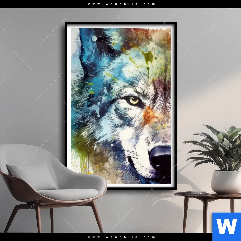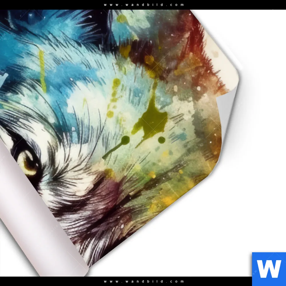 Poster | Wolf mit bunten Farbspritzern No. 2 | Hochformat