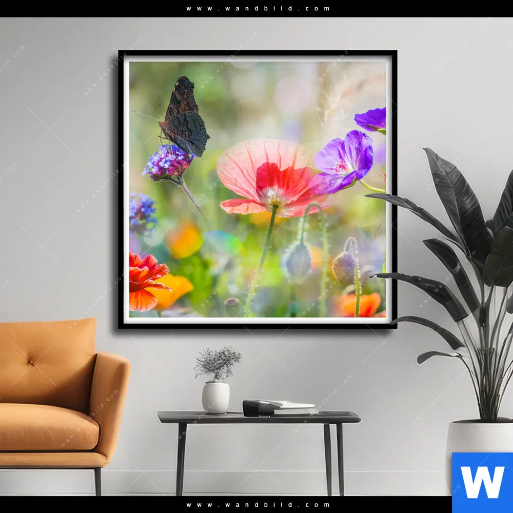 Poster | Blumenwiese mit Schmetterlingen | Quadrat