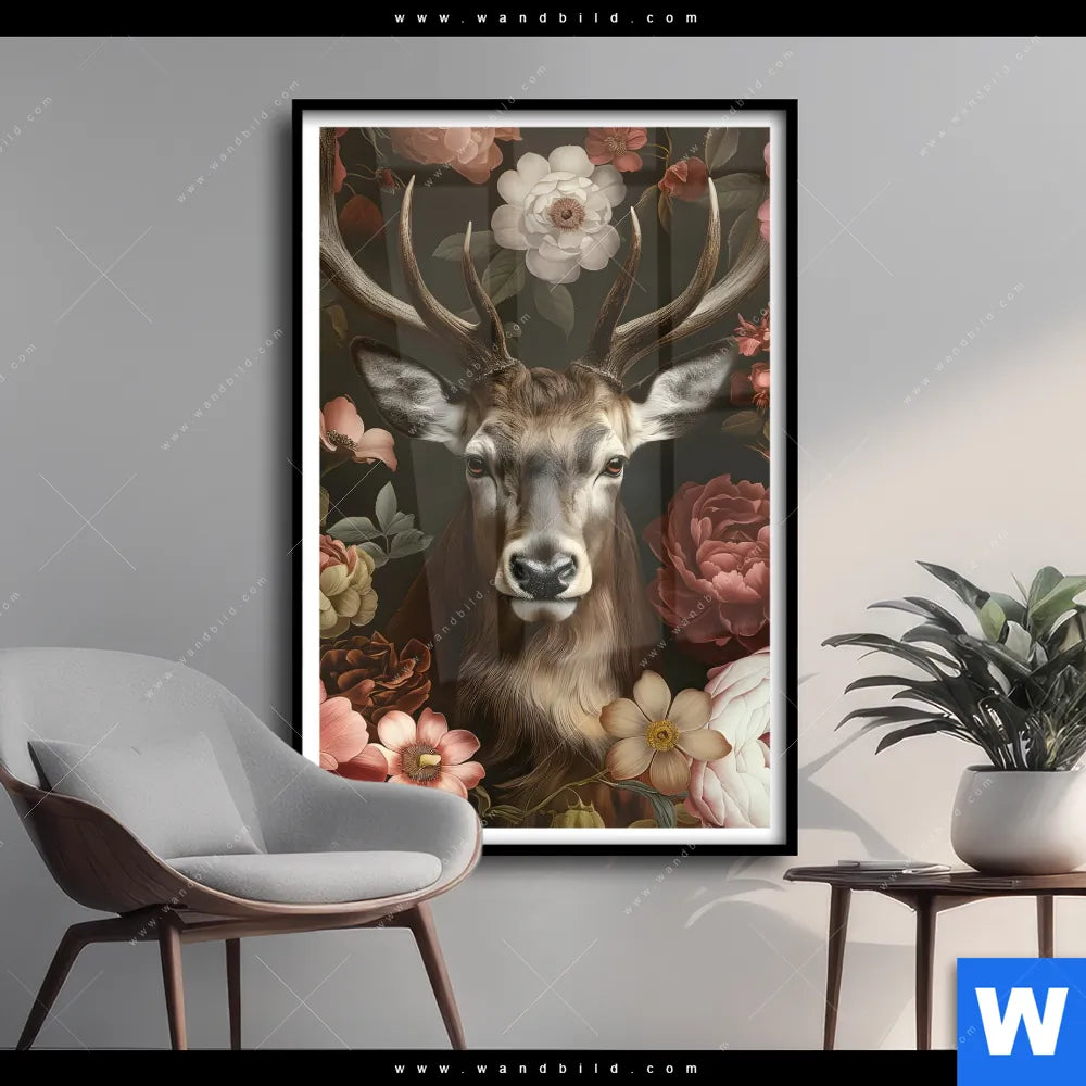 Poster | Friedlicher Hirsch und Blüten | Hochformat