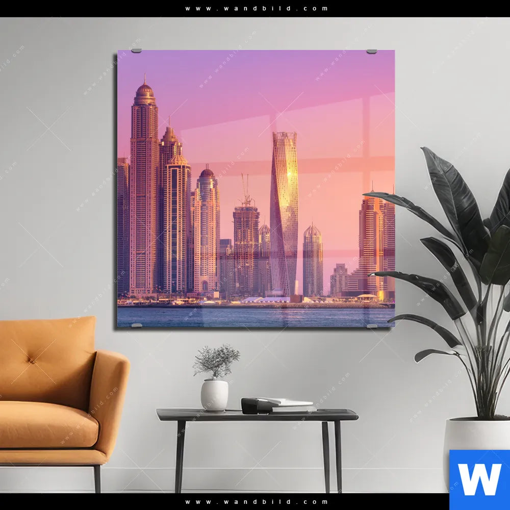 Acrylglasbild | Sonnenaufgang in Dubai | Quadrat