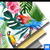 Alu-Dibond Bild | Blumen & Papageien Aquarell | Quadrat