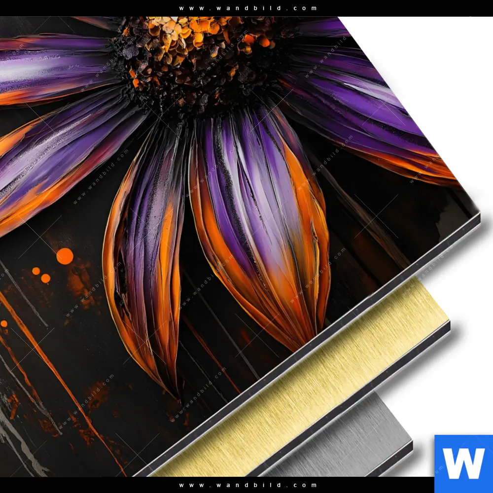 Aluminiumbild gebürstet | Abstrakte Blume in Orange & Lila | Quadrat
