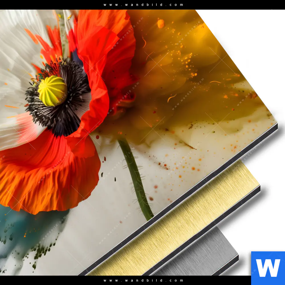 Aluminiumbild gebürstet | Mohnblume im Farbnebel | Quadrat