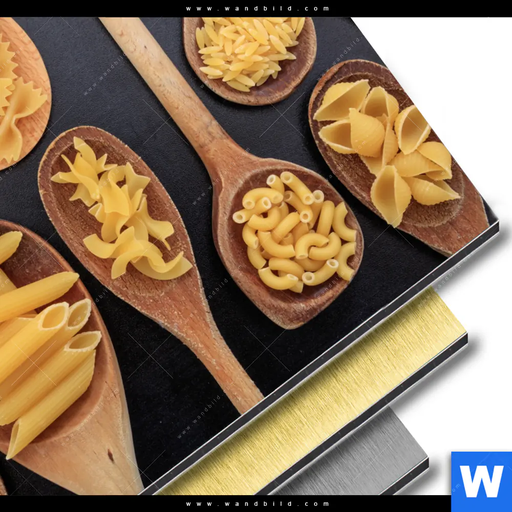 Aluminiumbild gebürstet | Pasta auf Löffeln | Quadrat