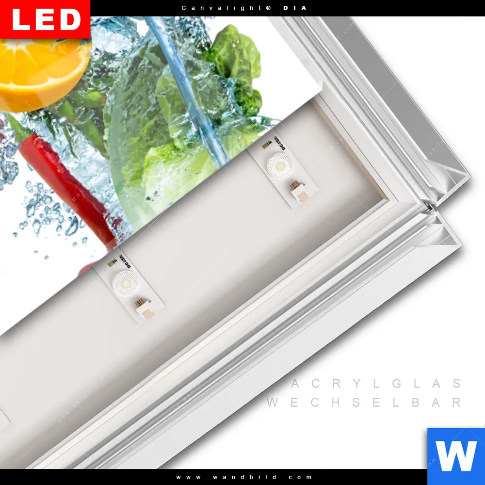 LED-Glasbild mit austauschbarem Acrylglas-Druck (Wechselbild)