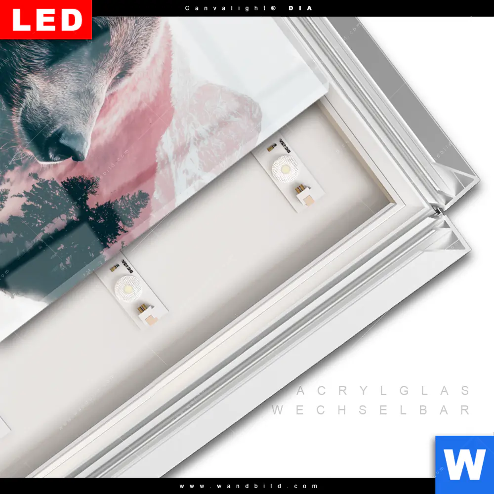 LED-Glasbild mit austauschbarem Acrylglas-Druck (Wechselbild)