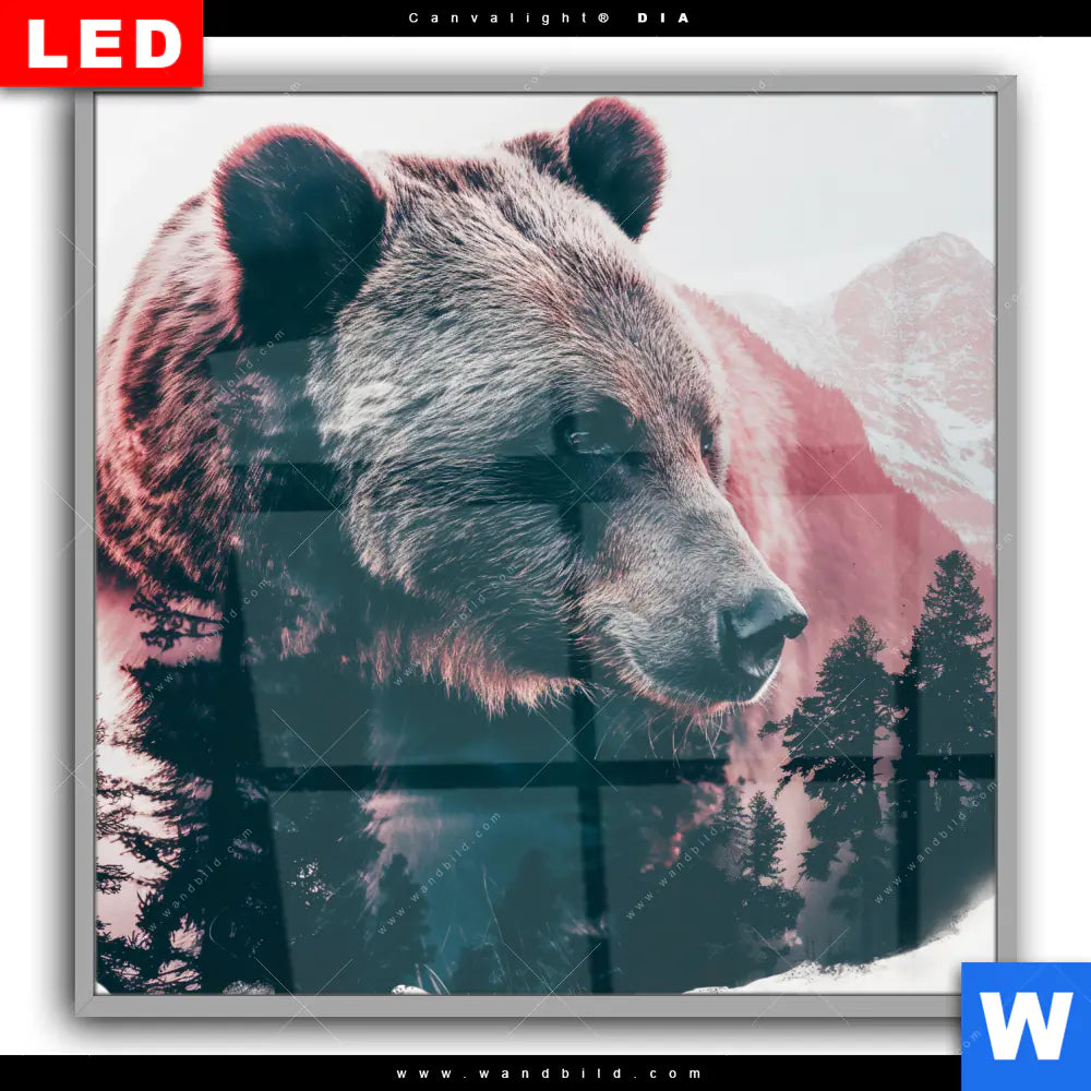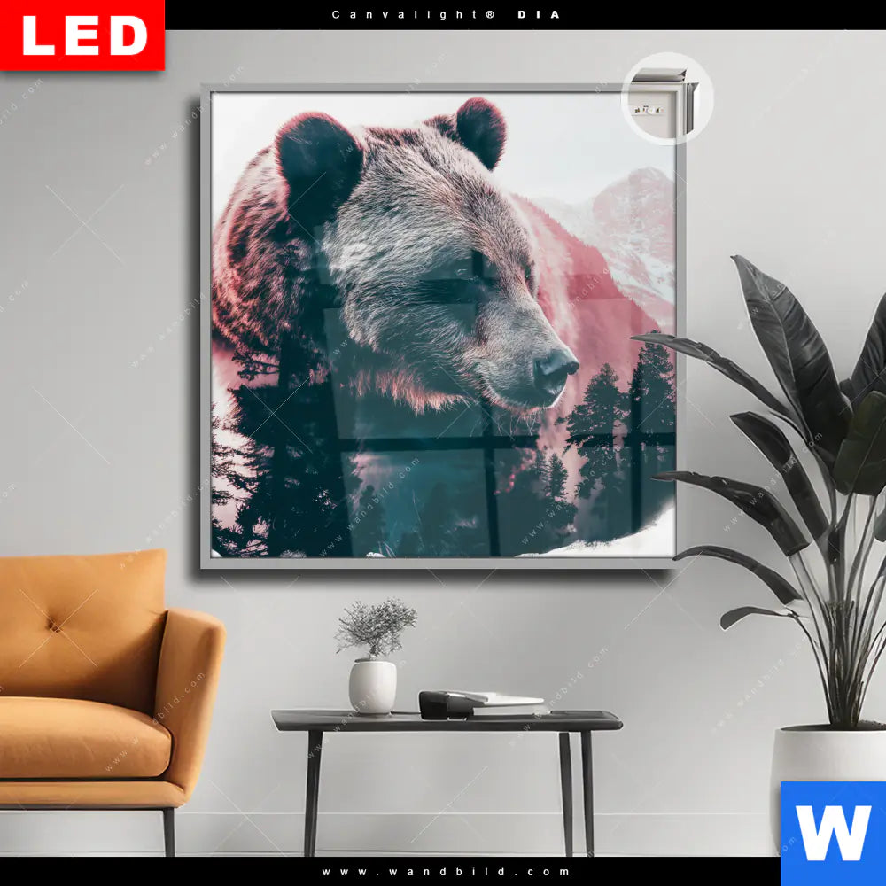 Canvalight® DIA Leuchtbild | Natur und Braunbär | Quadrat