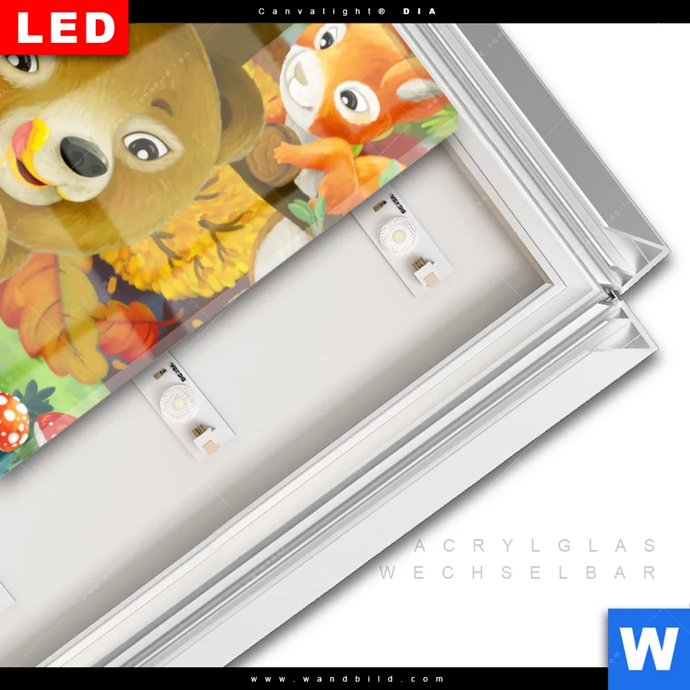 Canvalight® DIA Leuchtbild | Niedliche Waldtiere | Quadrat
