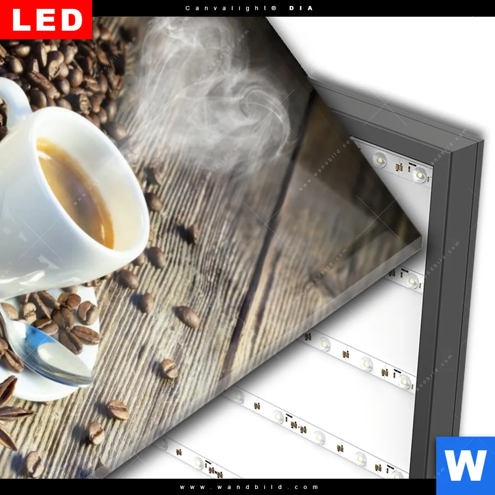 Wechselmotiv Acrylglas Canvalight® DIA | Köstlicher Kaffee | Quadrat