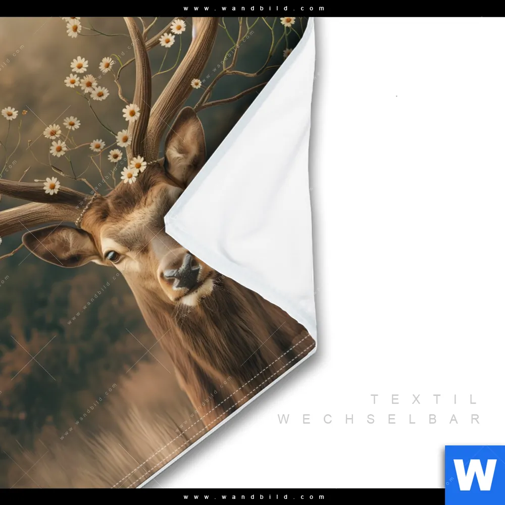 Wechselmotiv Textil | Magischer Hirsch im Waldrand | Quadrat