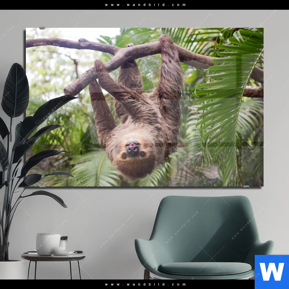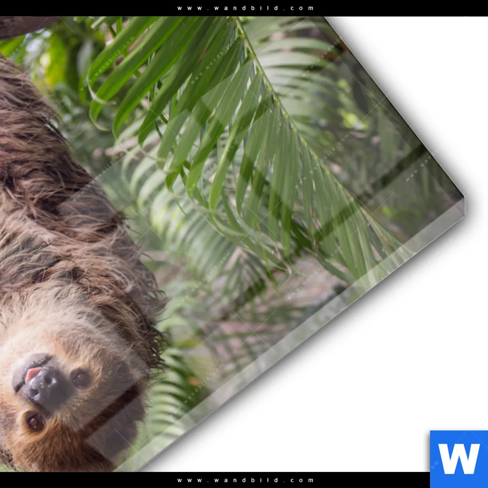 Acrylglasbild | Faultier streckt Zunge raus | Querformat