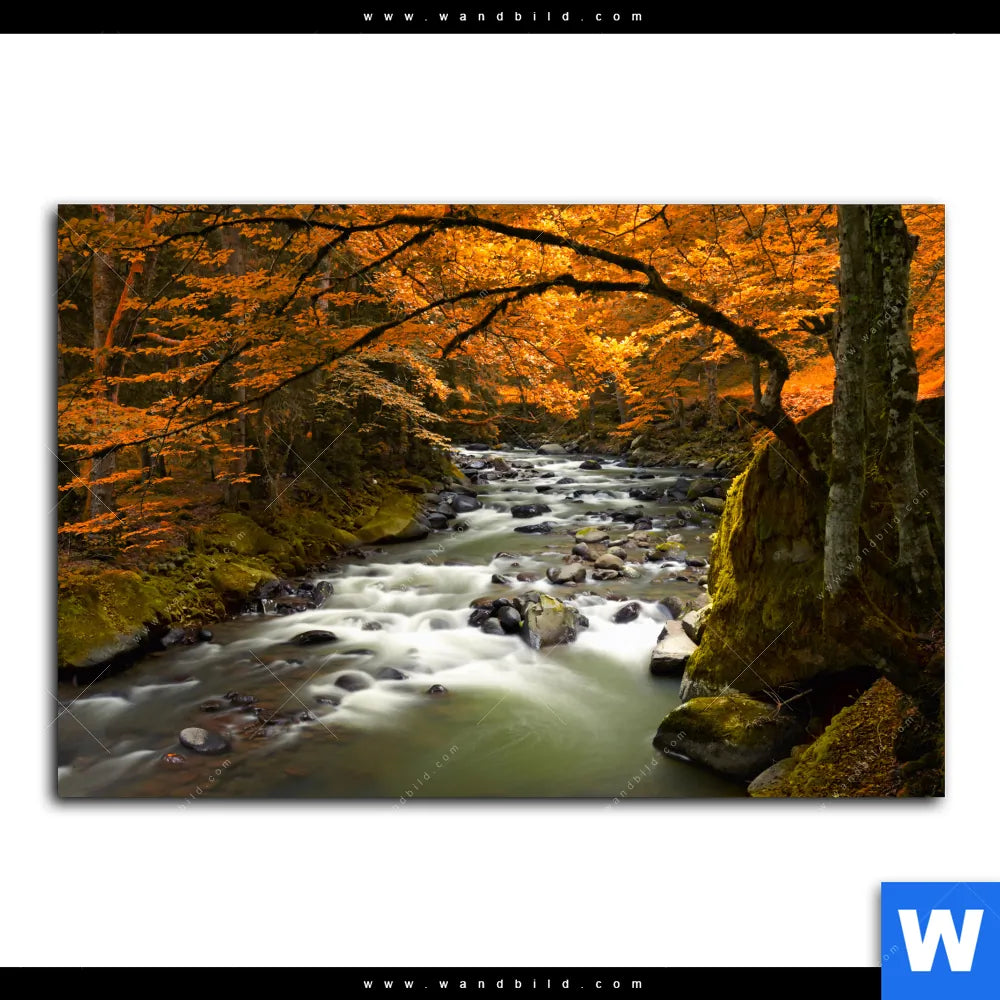 Aluminiumbild gebürstet | Herbstlandschaft am Fluss | Querformat