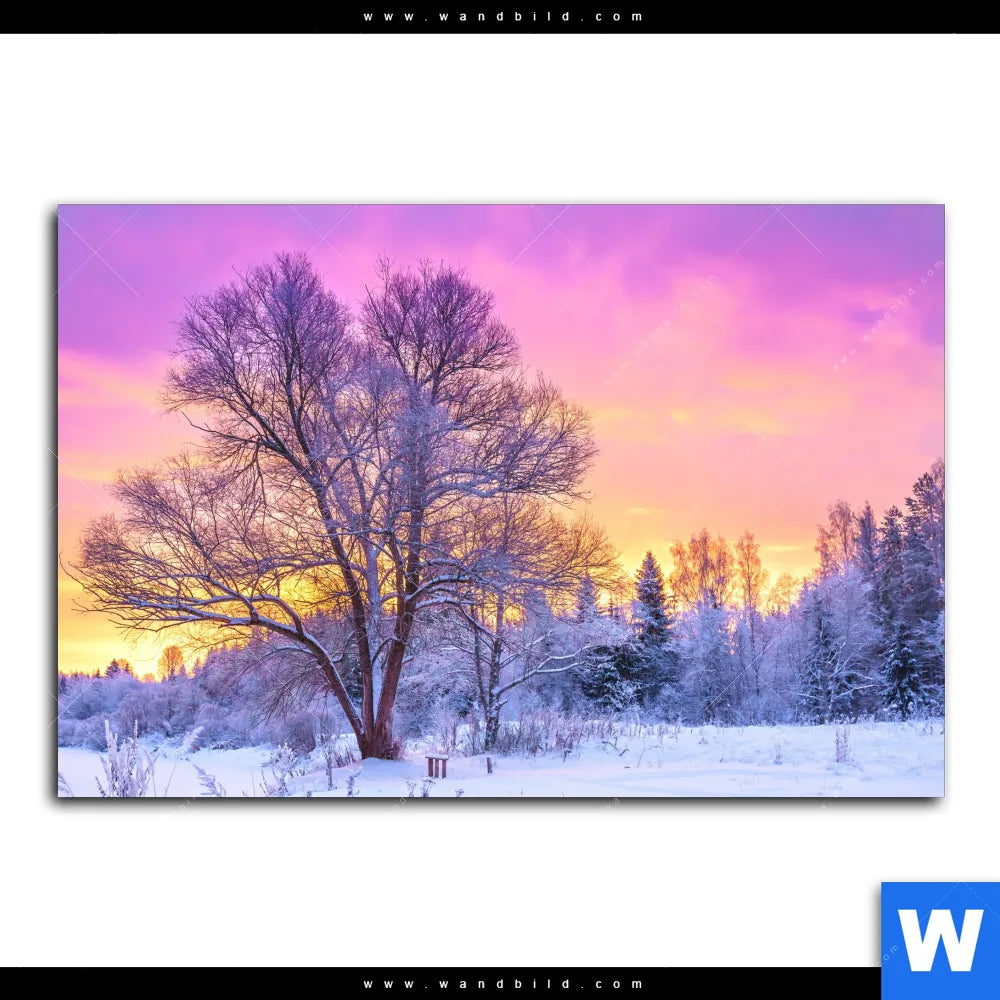 Landschaften, Winter, Wald - Bäume Aluminiumbild mit metallischem Effekt inkl. vormontiertem Rückrahmen
