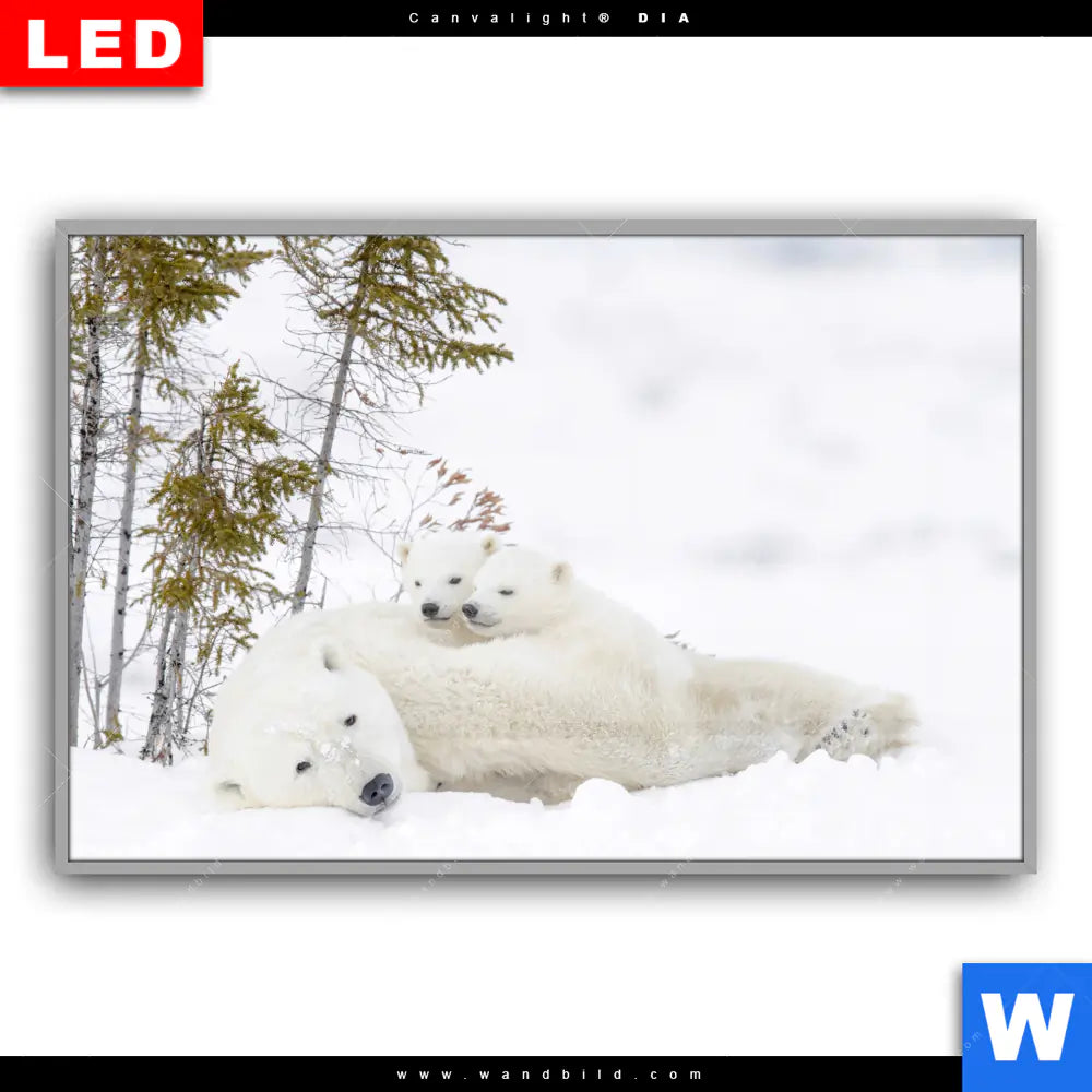 Canvalight® DIA Leuchtbild | Eisbärenfamilie in winterlicher Landschaft | Querformat