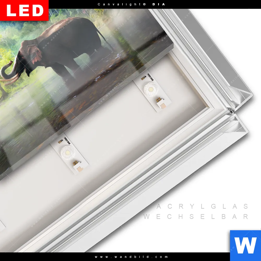LED-Glasbild mit austauschbarem Acrylglas-Druck (Wechselbild)