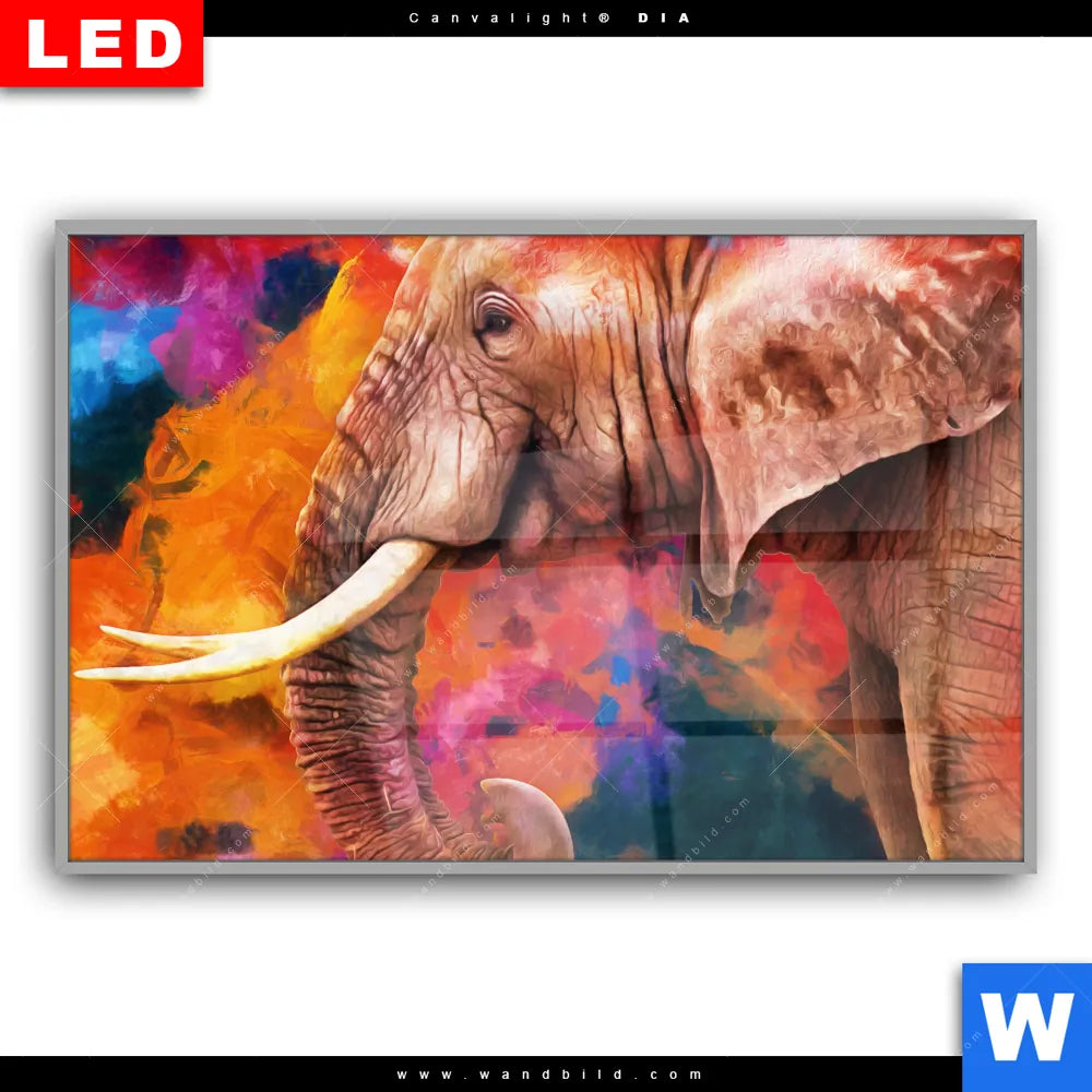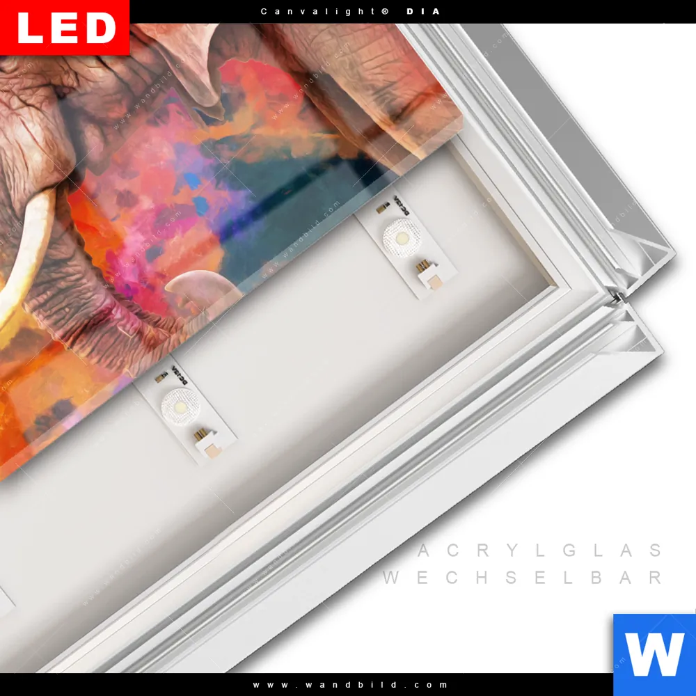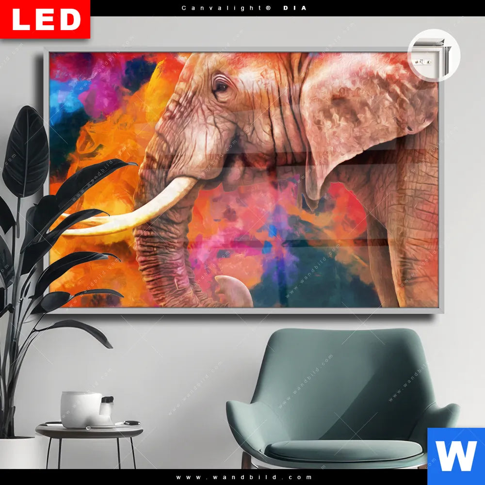 Canvalight® DIA Leuchtbild | Moderner Bunter Elefant | Querformat