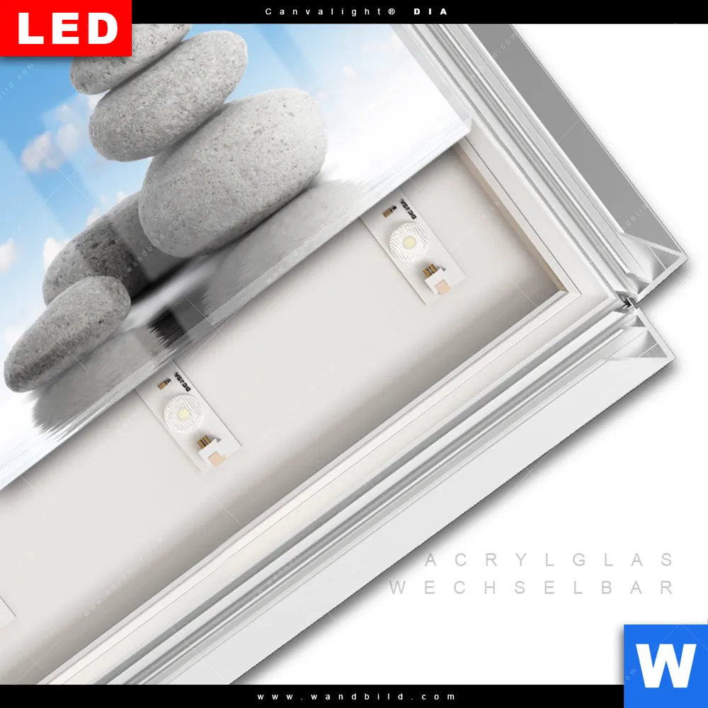LED-Glasbild mit austauschbarem Acrylglas-Druck (Wechselbild)