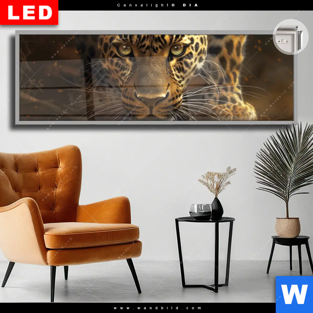 Canvalight® DIA Leuchtbild | Geheimnisvoller Leopard | Panorama
