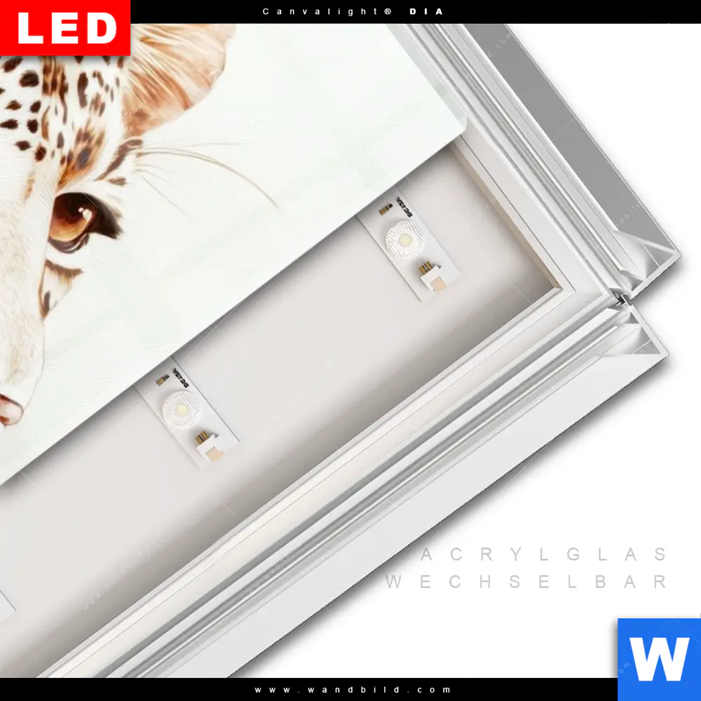LED-Glasbild mit austauschbarem Acrylglas-Druck (Wechselbild)