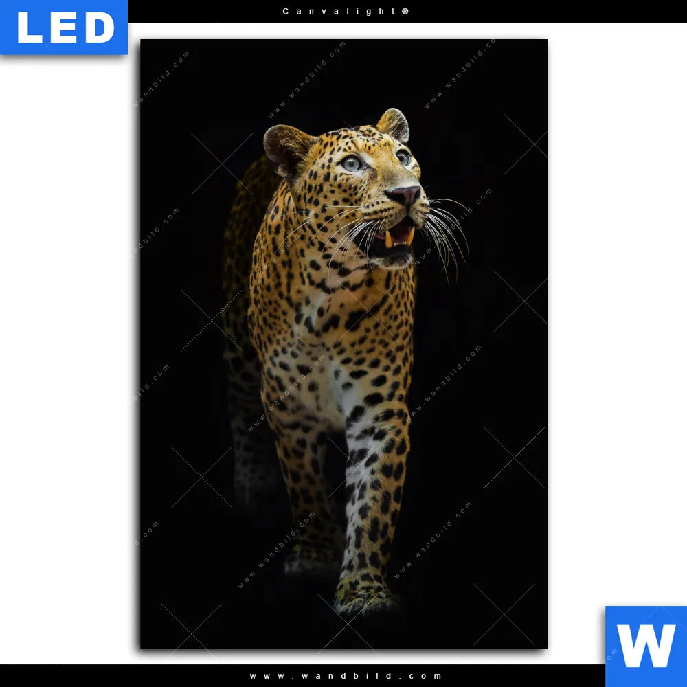 Canvalight® Leuchtbild | Leopard in der Dunkelheit | Hochformat