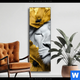 Wechselmotiv Textil | Weiße Löwin mit Goldblüten | Hochformat