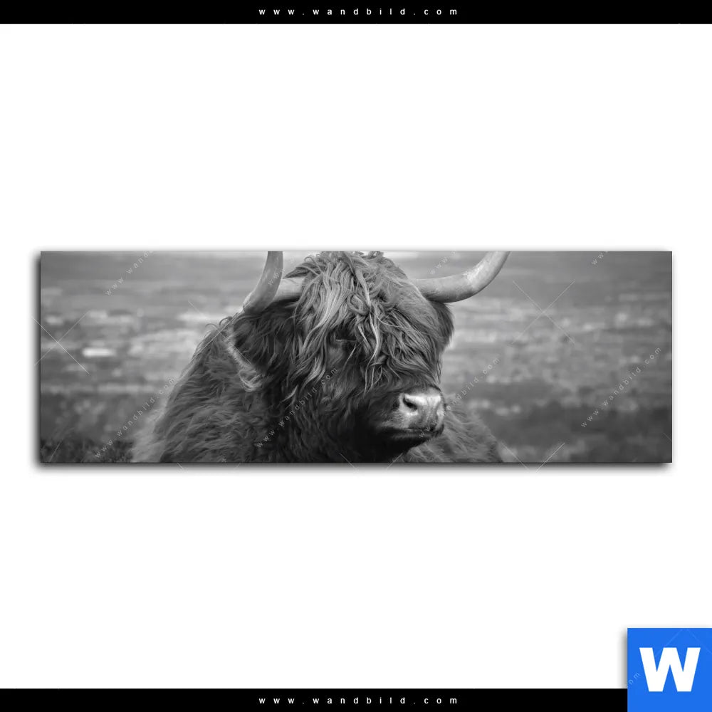 Acrylglasbild | Hochland-Rind Schwarz-Weiß No. 2 | Panorama