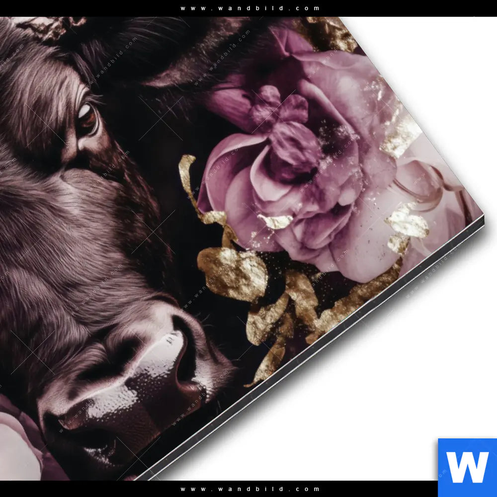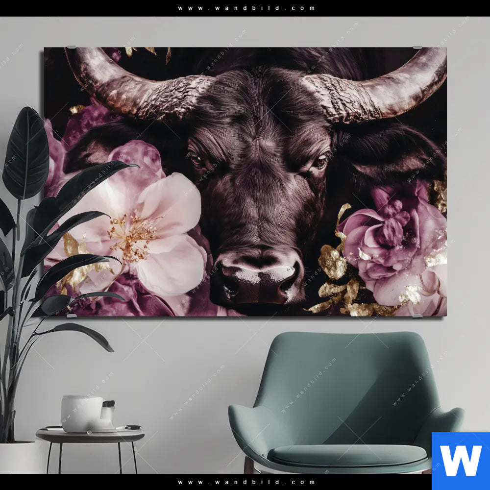 Alu-Dibond Bild | Stier mit Blumen | Querformat