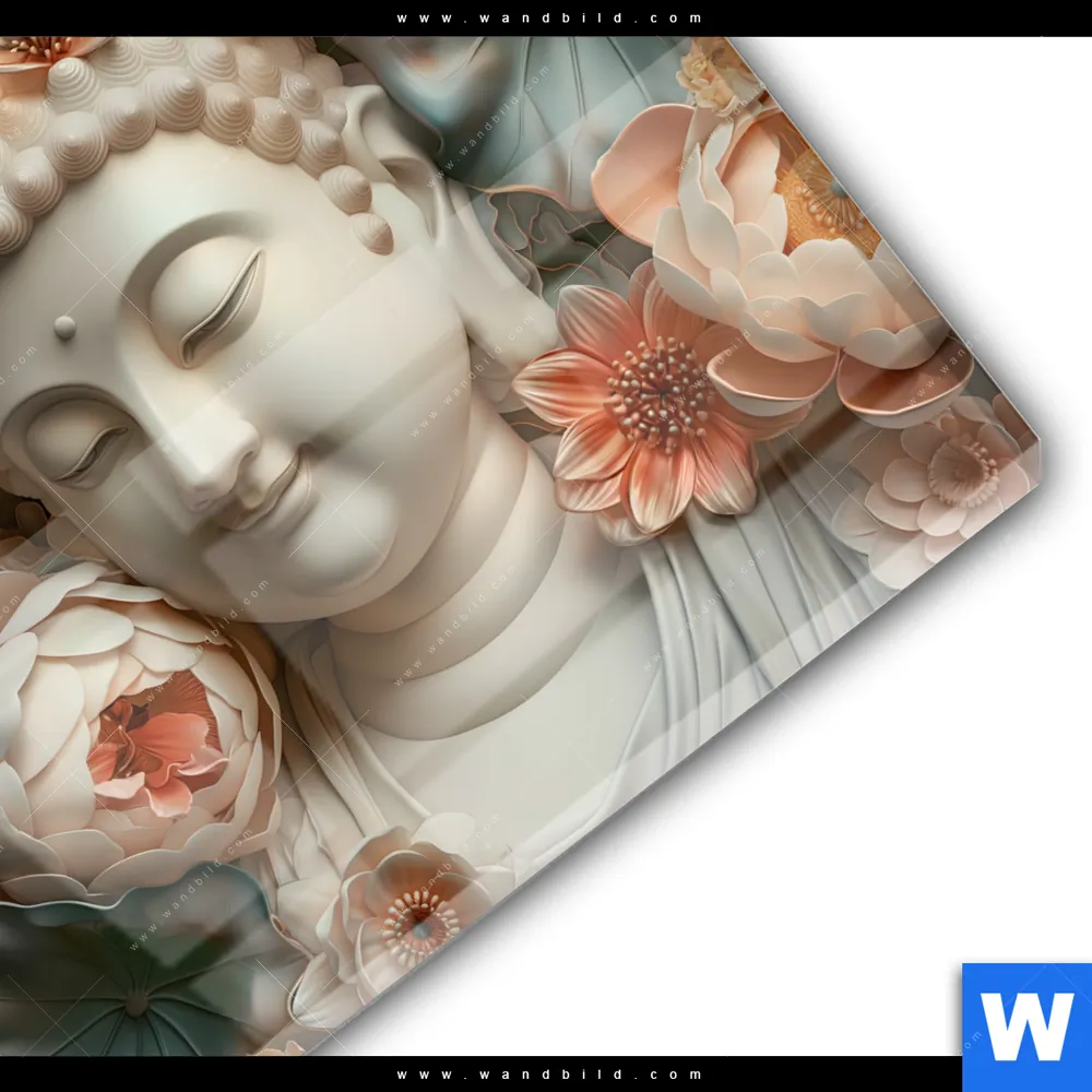 Buddha - Feng Shui, Blumen - Botanik Glasbild inkl. vormontiertem Rückrahmen