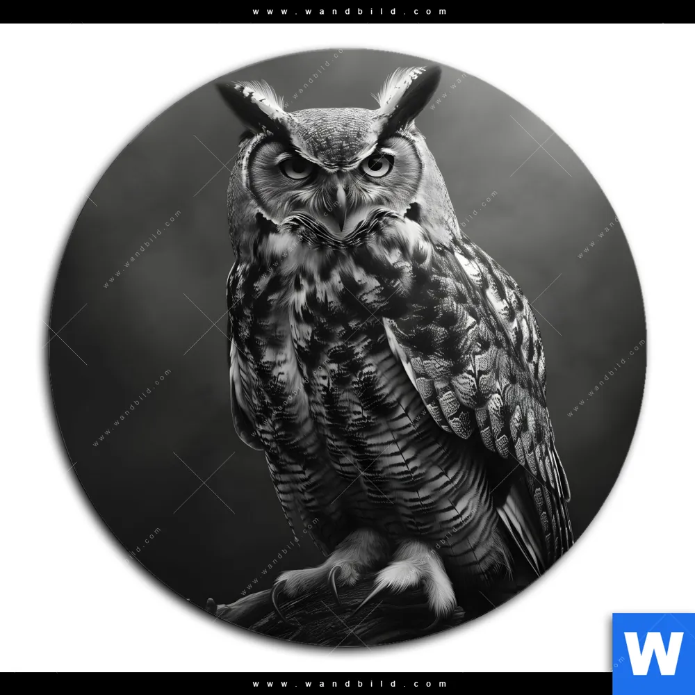 Acrylglasbild | Düstere Eleganz der Eule | Rund