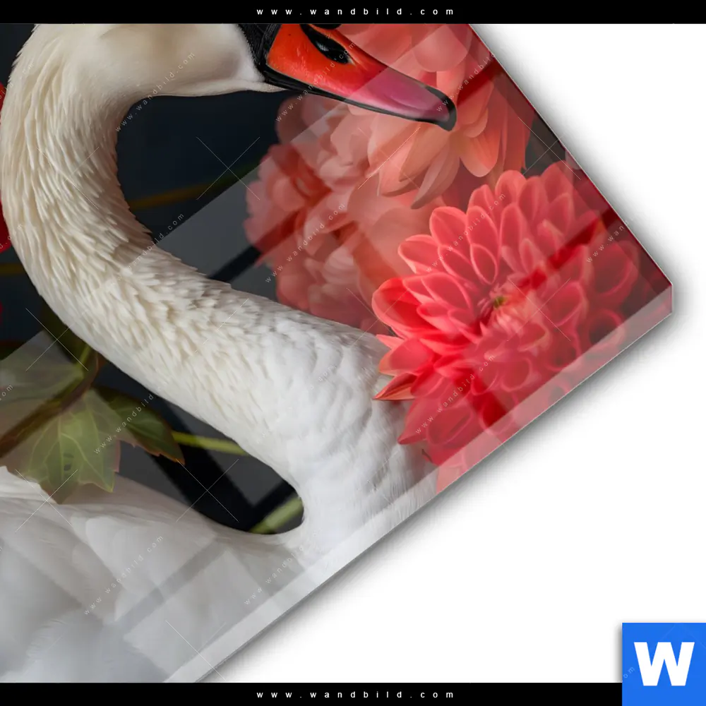 Acrylglasbild | Eleganter Schwan mit Blumen | Rund