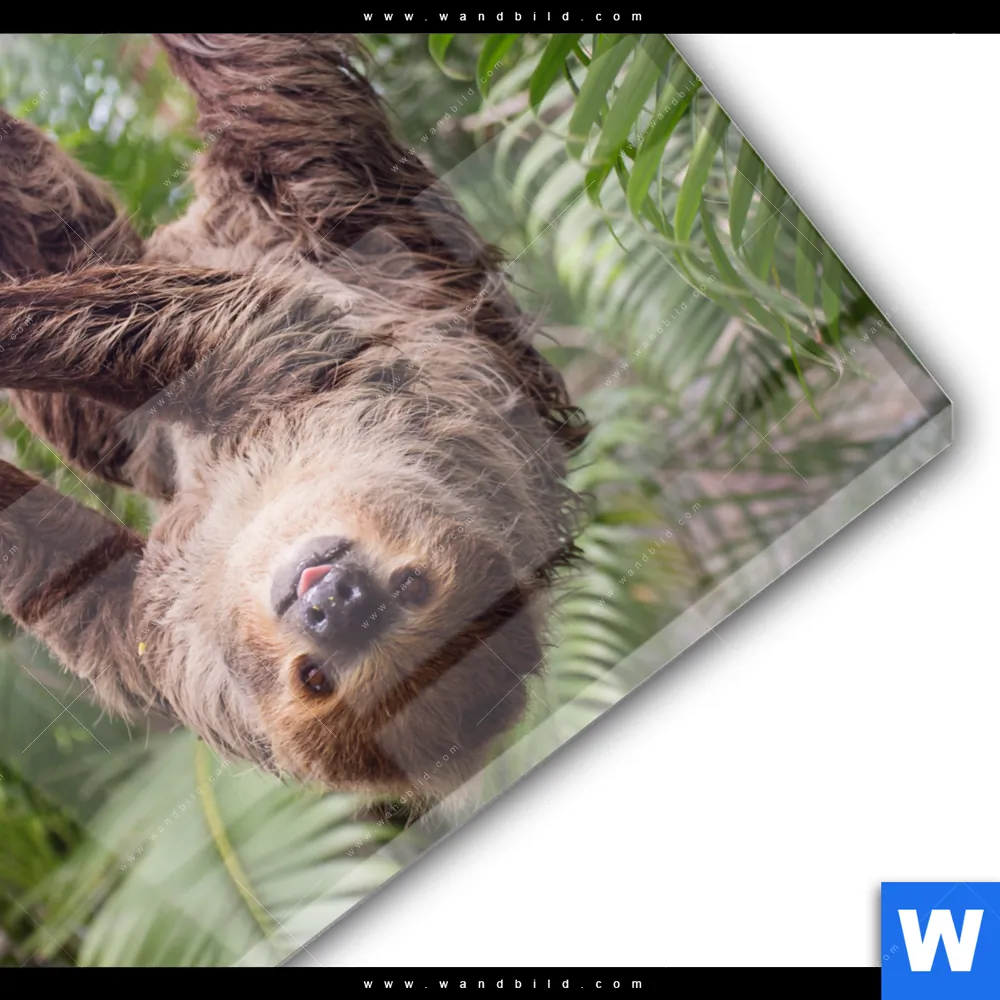 Acrylglasbild | Faultier streckt Zunge raus | Rund