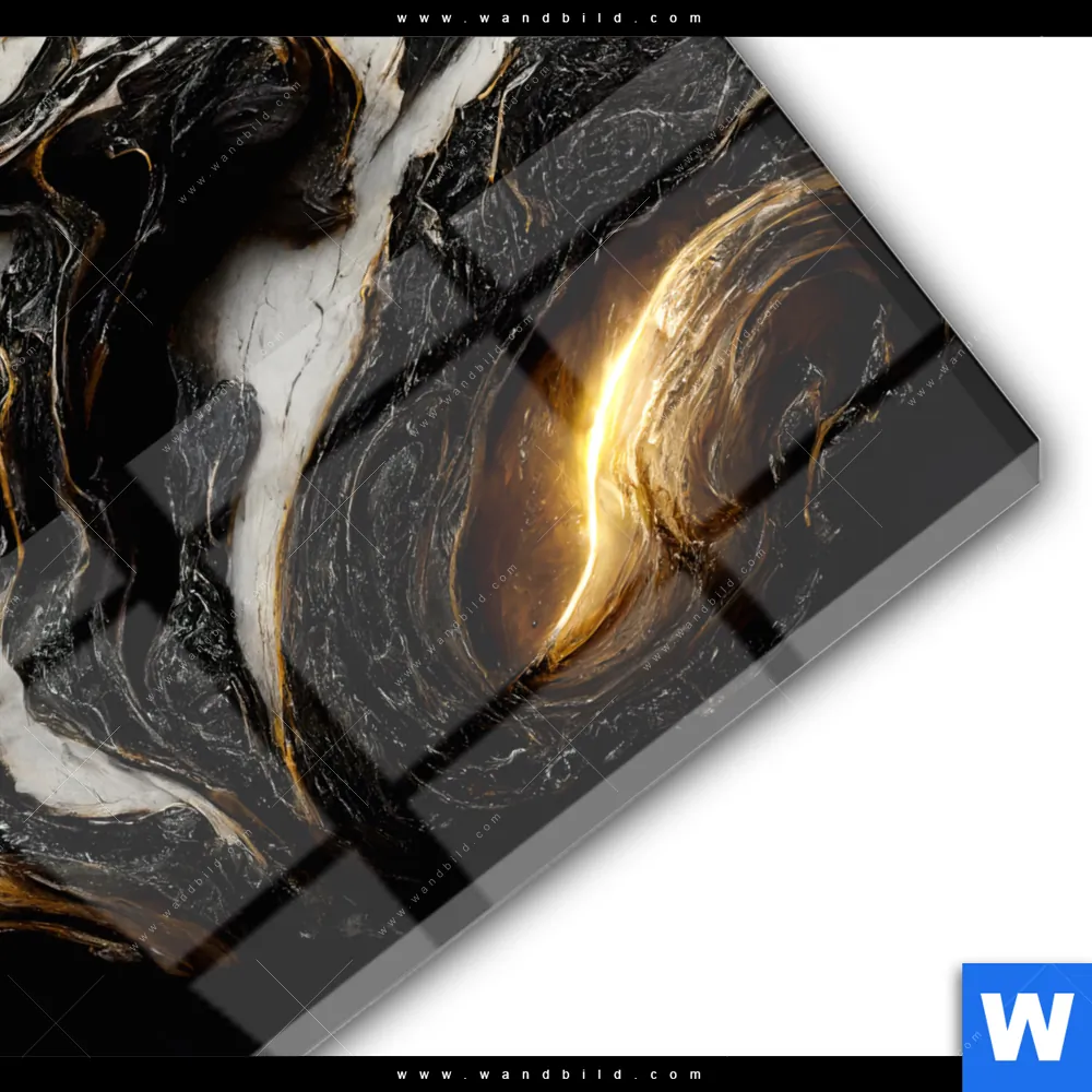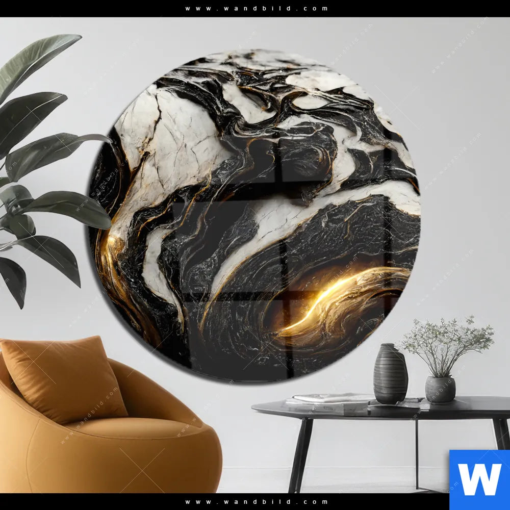 Acrylglasbild | Liquid Marmor Schwarz Gold | Rund