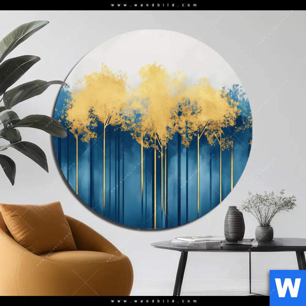 Alu-Dibond Bild | Abstrakter Wald - Blau & Gold | Rund