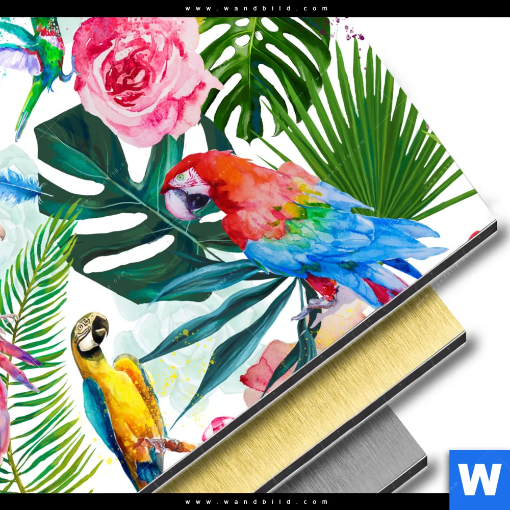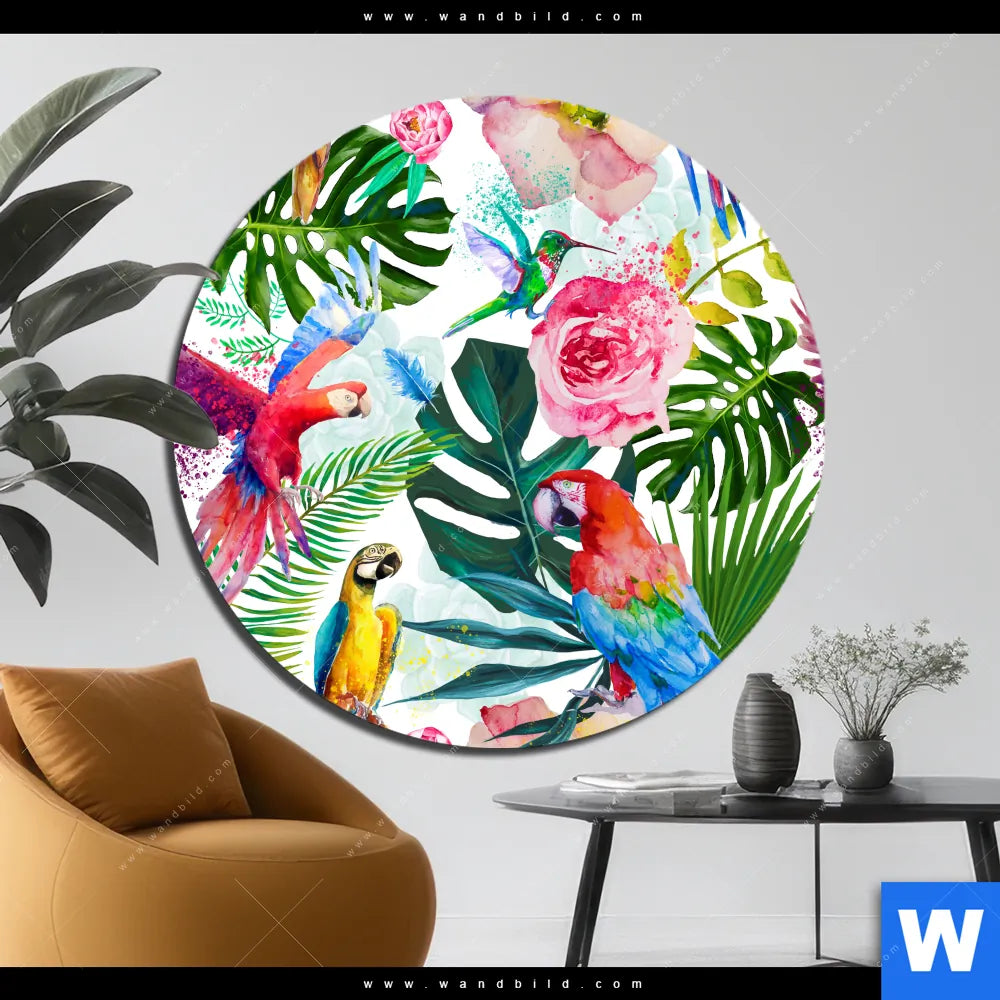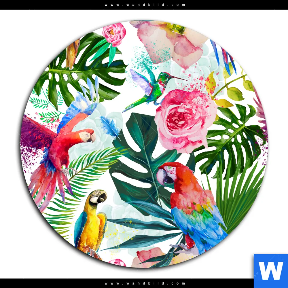 Alu-Dibond Bild | Blumen & Papageien Aquarell | Rund