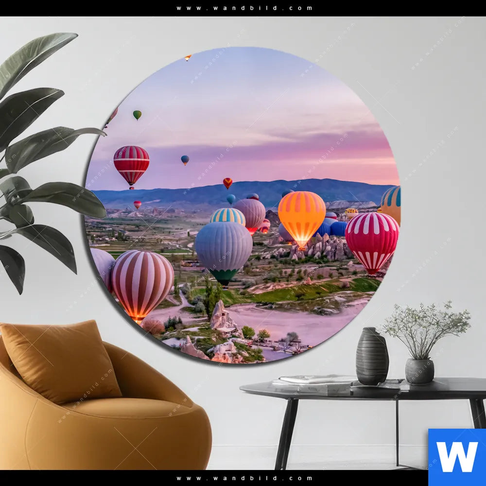 Alu-Dibond Bild | Heißluftballons im Sonnenuntergang | Rund