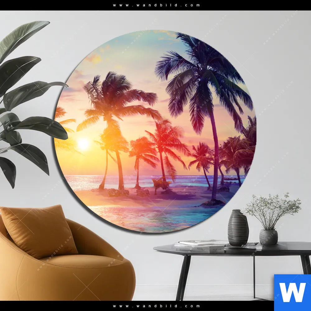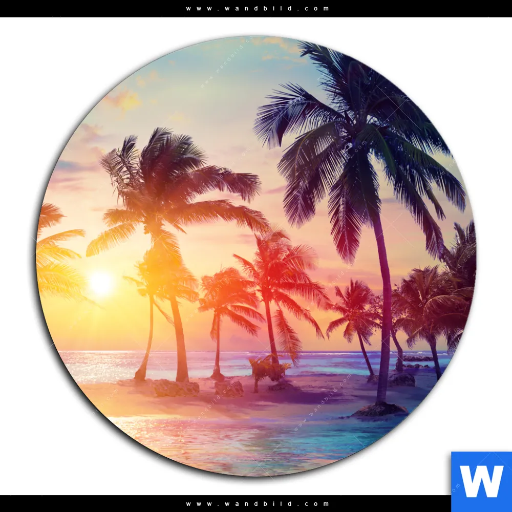 Alu-Dibond Bild | Palmen bei Sonnenuntergang | Rund