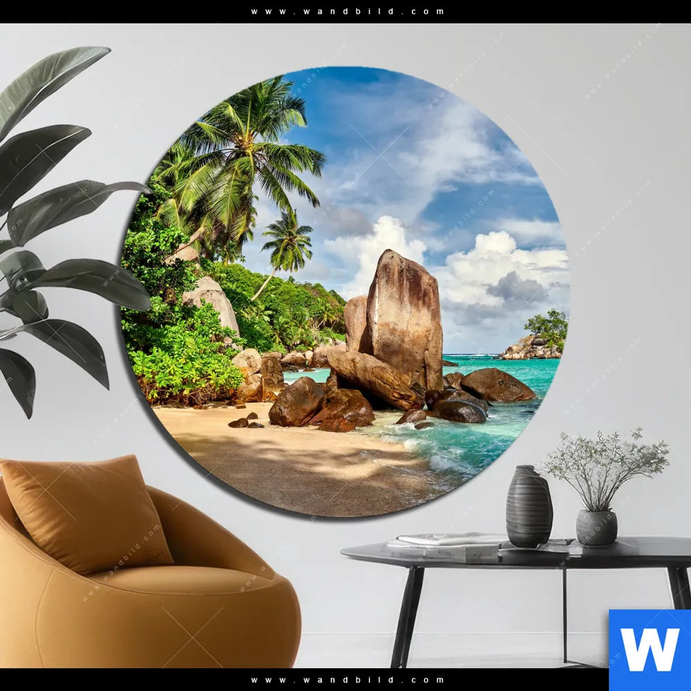 Alu-Dibond Bild | Schöner Strand mit Palmen | Rund