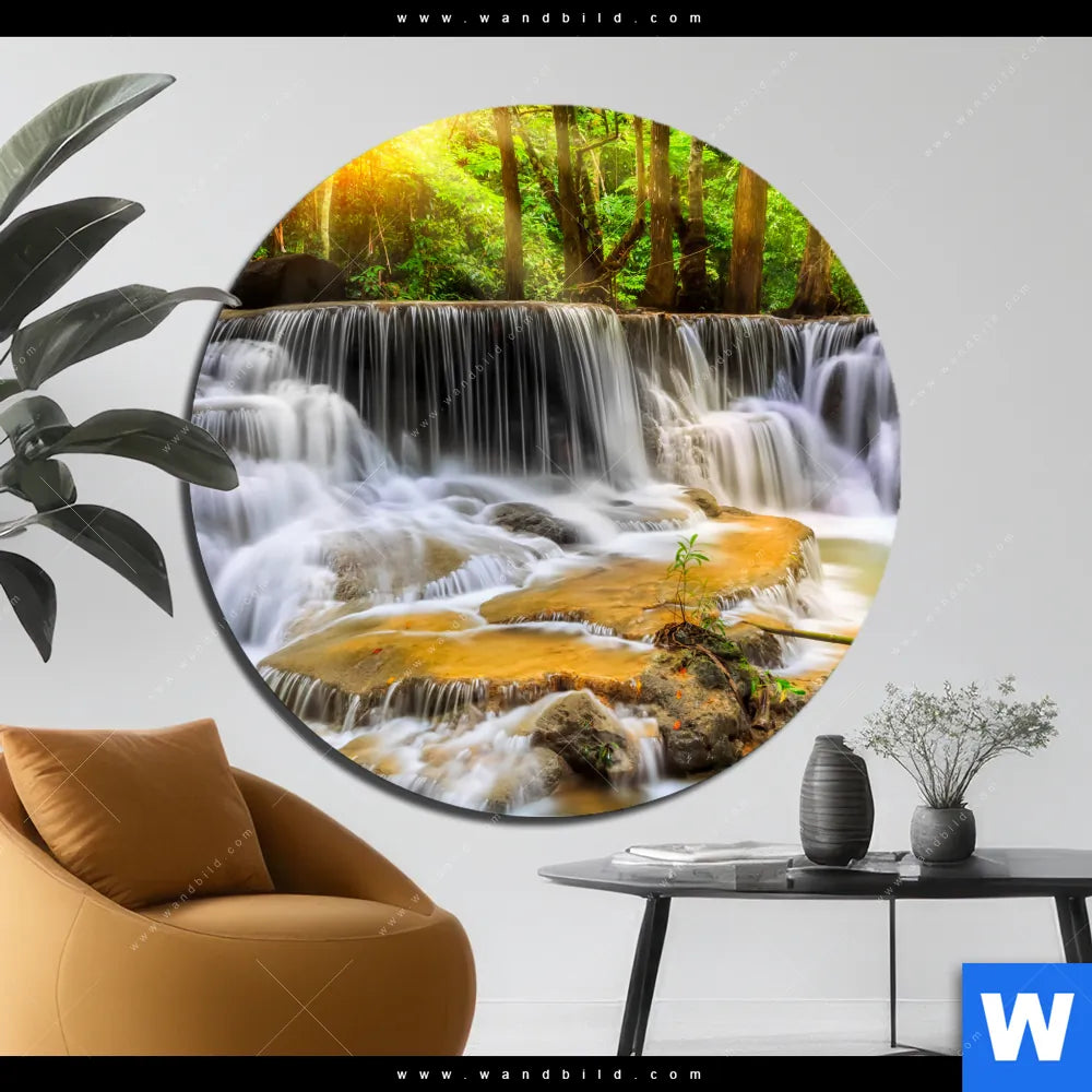 Alu-Dibond Bild | Wald & Wasserfall No. 2 | Rund