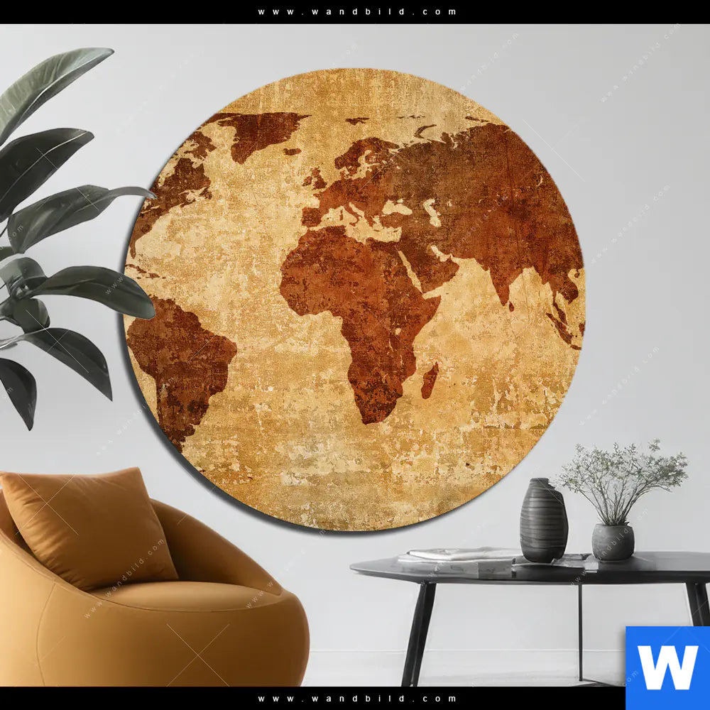 Alu-Dibond Bild | Weltkarte Rostoptik | Rund