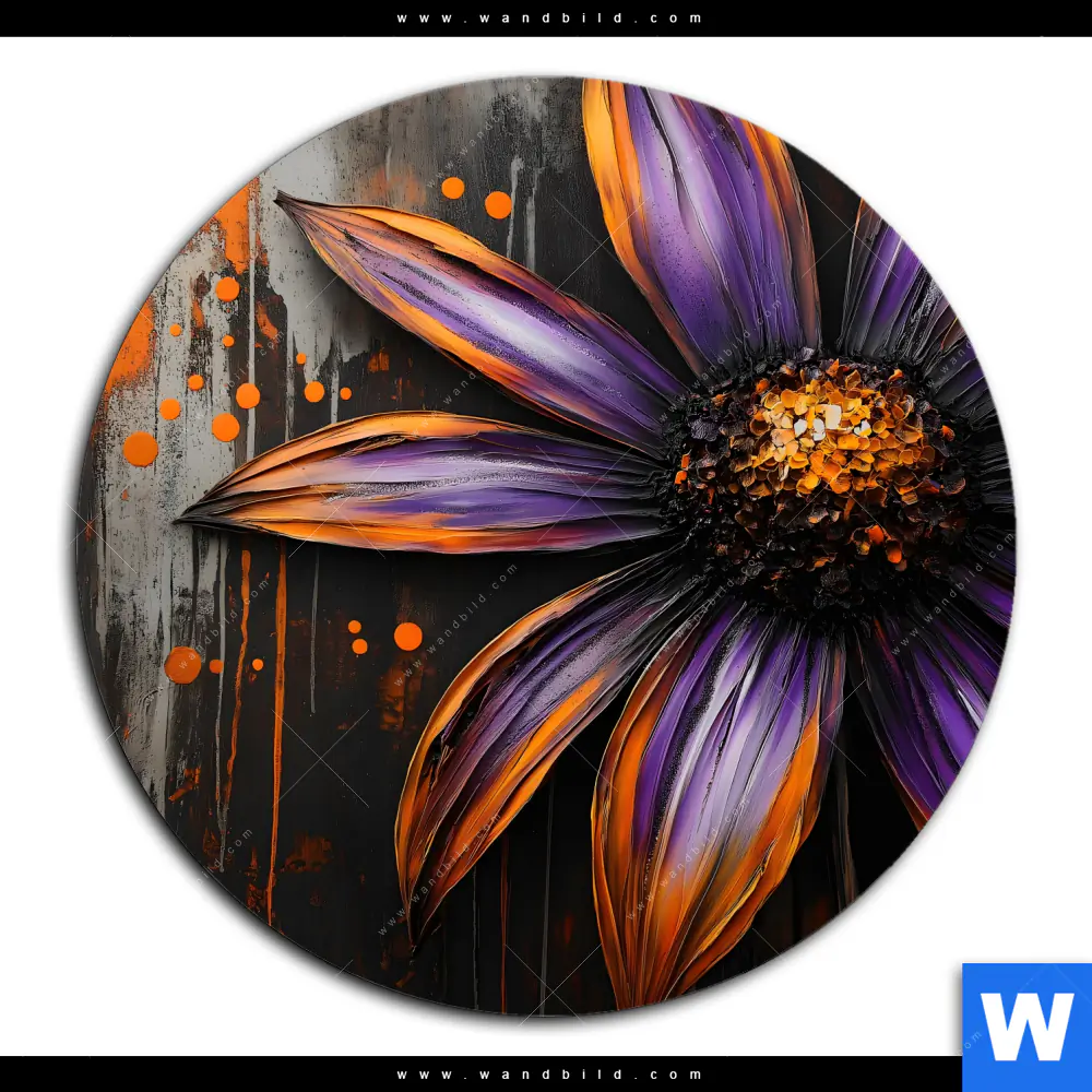 Aluminiumbild gebürstet | Abstrakte Blume in Orange & Lila | Rund