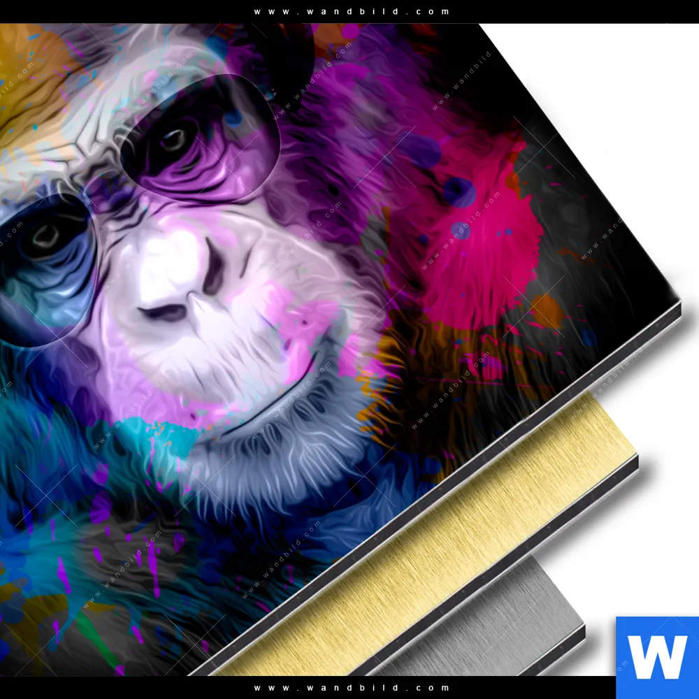 Aluminiumbild gebürstet | Affe Pop Art No.1 | Rund