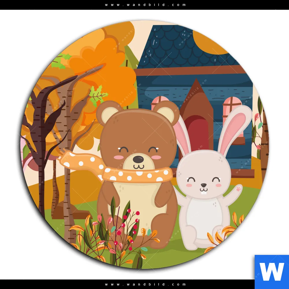 Aluminiumbild gebürstet | Bär & Häschen | Rund